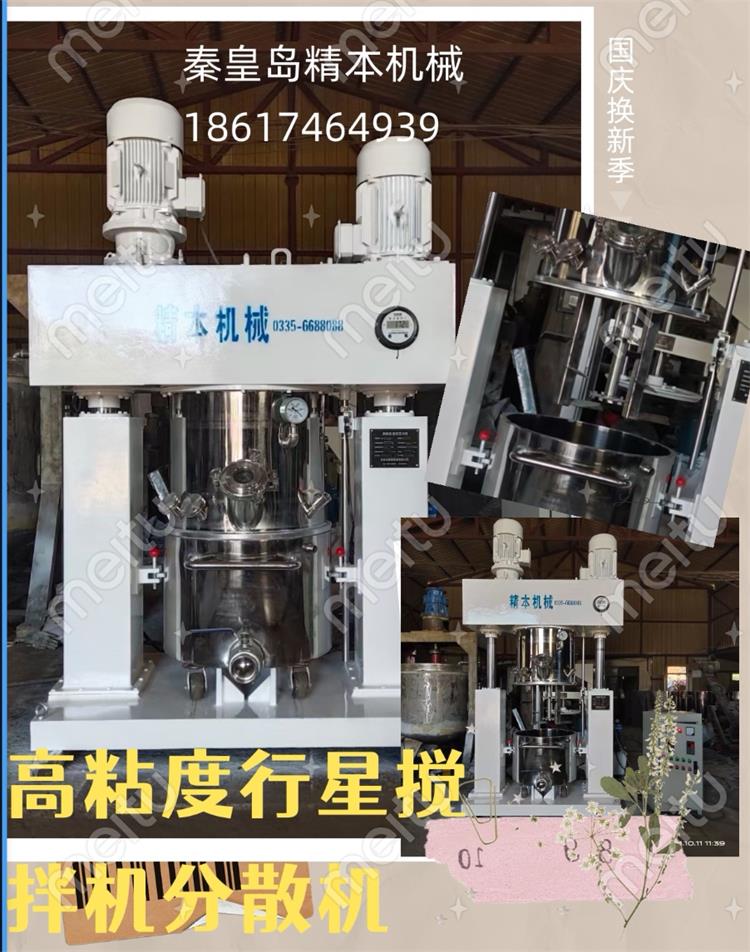 行星攪拌機通常有2個或3個多層折頁式槳葉,槳葉在公轉(zhuǎn)的同時也自轉(zhuǎn),使物料上下及四周流動,從而可在很短時間內(nèi)達到混合效果。行星攪拌機缸體內(nèi)壁為大型立車精加工,再經(jīng)大型拋光機自動拋光,確保行星架上的活動刮刀在旋轉(zhuǎn)時,把缸體內(nèi)壁上的物料完全刮掉;該機特別適合膏體、高黏度、高密度的物料溶解、混合、混煉、聚合等。